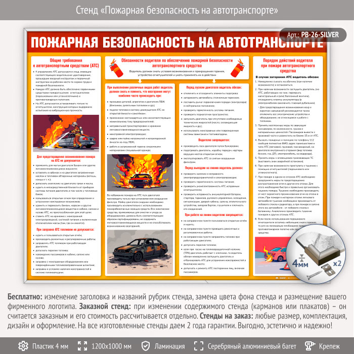 Стенд «Пожарная безопасность на автотранспорте» (PB-26-SILVER) в Пушкино купить