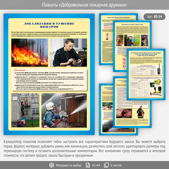 Плакаты «Добровольная пожарная дружина» (ВЗ-14, 6 листов) в Пушкино купить
