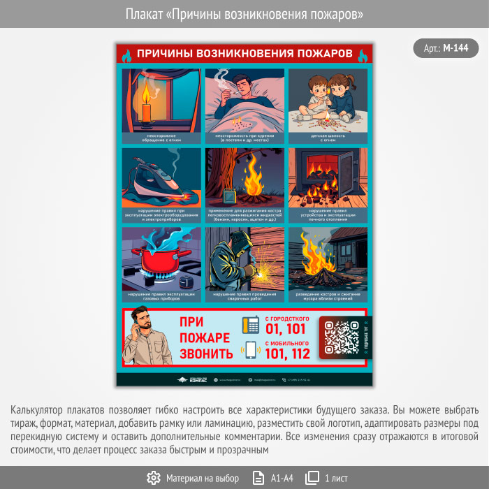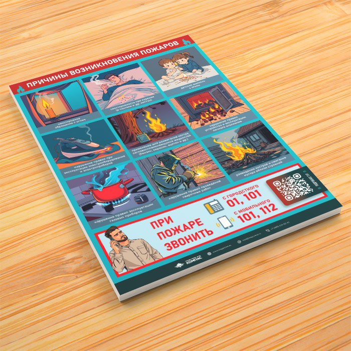 Плакат «Причины возникновения пожаров» с QR (М-144, 1 лист) в Пушкино купить