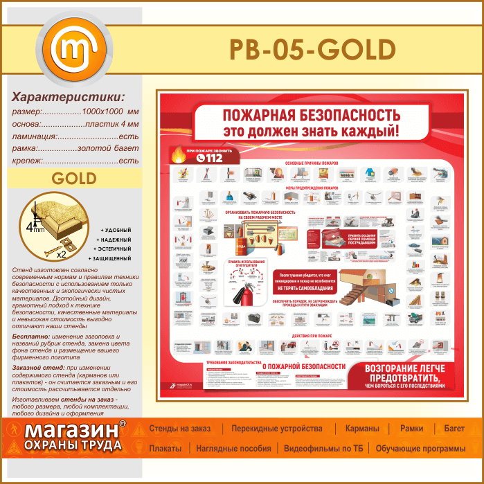 Стенд «Пожарная безопасность. Это должен знать каждый» (PB-05-GOLD) в Пушкино купить