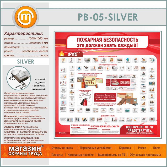 Стенд «Пожарная безопасность. Это должен знать каждый» (PB-05-SILVER) в Пушкино купить