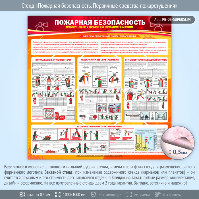 Стенд «Пожарная безопасность. Первичные средства пожаротушения» (PB-03-SUPERSLIM) в Пушкино купить
