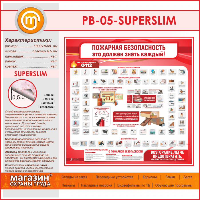 Стенд «Пожарная безопасность. Это должен знать каждый» (PB-05-SUPERSLIM) в Пушкино купить