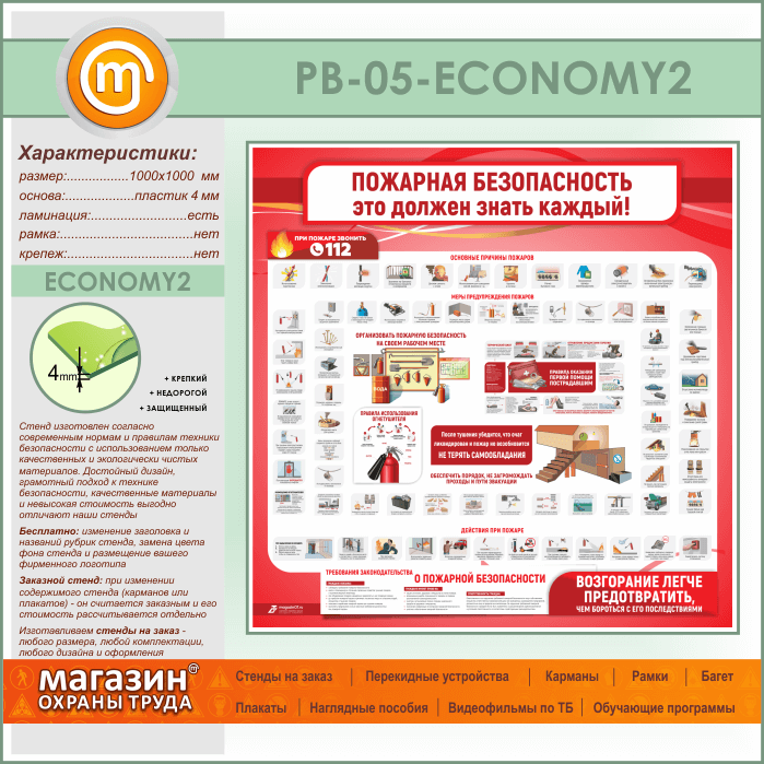 Стенд «Пожарная безопасность. Это должен знать каждый» (PB-05-ECONOMY2) в Пушкино купить