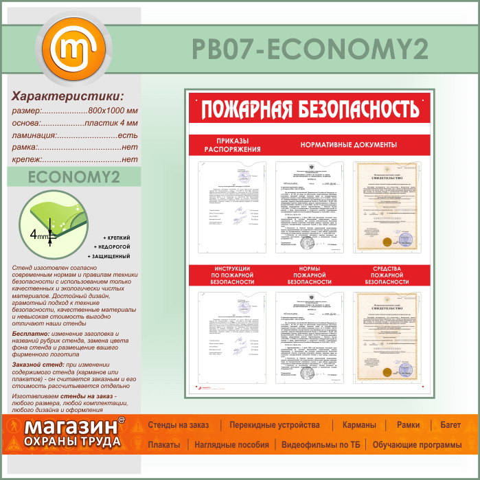 Стенд «Пожарная безопасность» с 6 карманами (PB-07-ECONOMY2) в Пушкино купить
