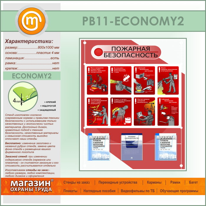 Стенд «Стенд пожарная безопасность в строительстве» с 3 объемными карманами (PB-11-ECONOMY2) в Пушкино купить