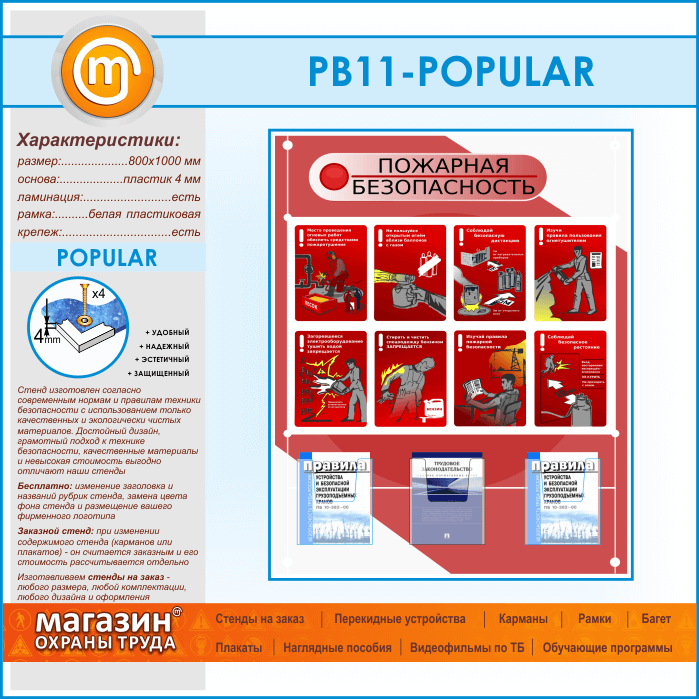 Стенд «Стенд пожарная безопасность в строительстве» с 3 объемными карманами (PB-11-POPULAR) в Пушкино купить