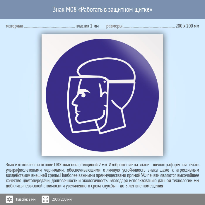 Знак M08 «Работать в защитном щитке» (пластик, 200х200 мм) в Пушкино купить