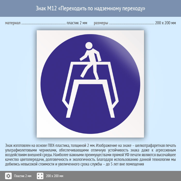 Знак M12 «Переходить по надземному переходу» (пластик, 200х200 мм) в Пушкино купить