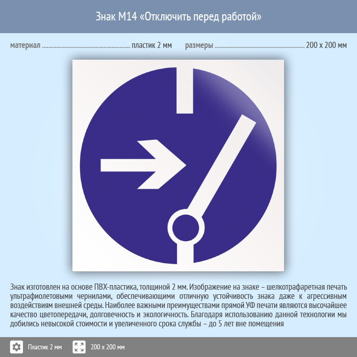Знак M14 «Отключить перед работой» (пластик, 200х200 мм) в Пушкино купить