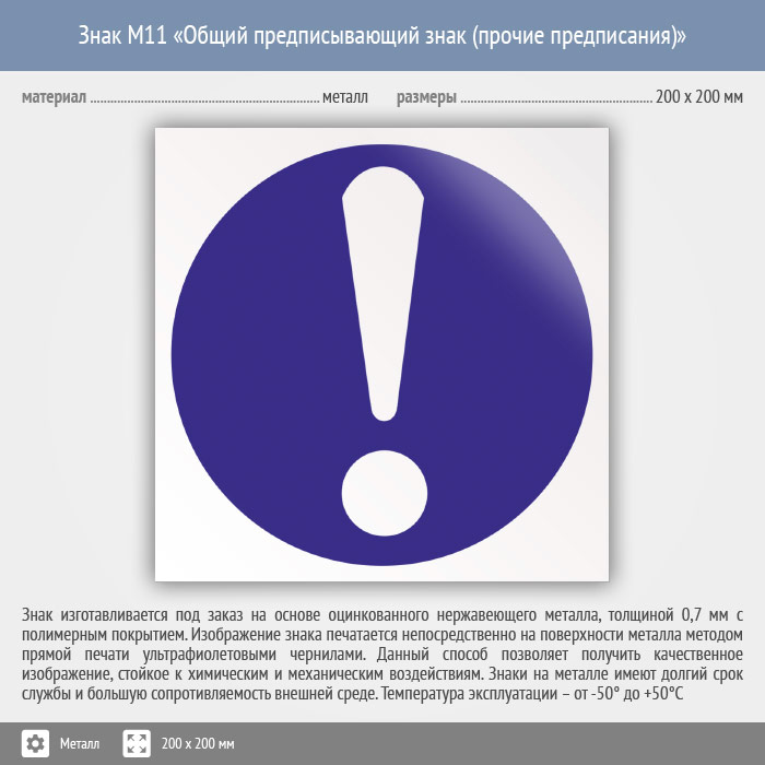 Знак M11 «Общий предписывающий знак (прочие предписания)» (металл, 200х200 мм) в Пушкино купить