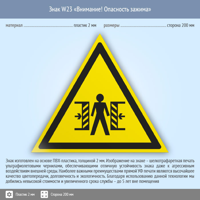 Знак W23 «Внимание! опасность зажима» (пластик, сторона 200 мм) в Пушкино купить
