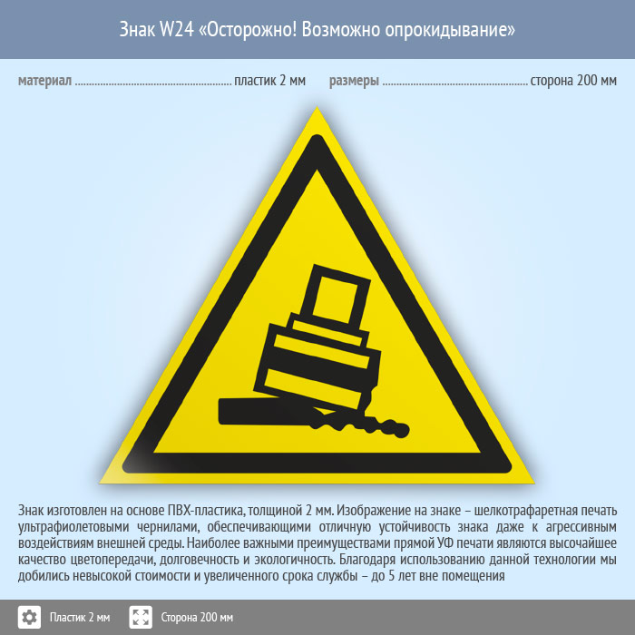 Знак W24 «Осторожно! возможно опрокидывание» (пластик, сторона 200 мм) в Пушкино купить