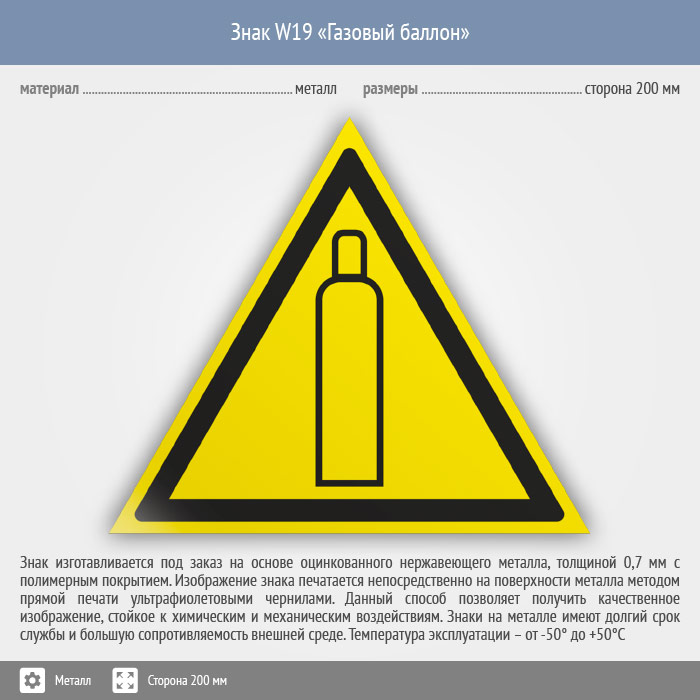 Знак W19 «Газовый баллон» (металл, сторона 200 мм) в Пушкино купить
