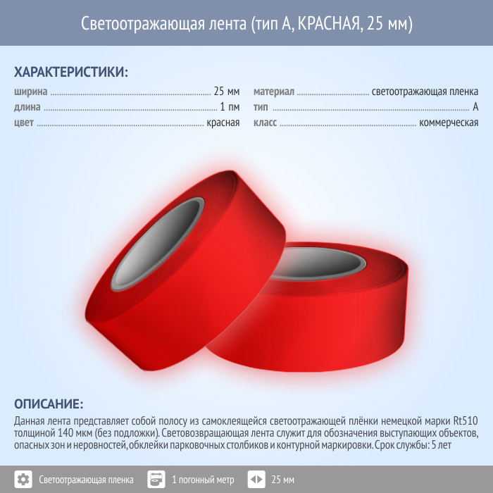 Светоотражающая однородная лента (тип А, КРАСНАЯ, 25 мм х 1 п.м.) в Пушкино купить