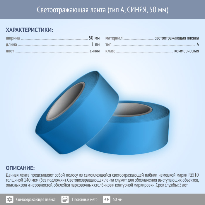 Светоотражающая однородная лента (тип А, СИНЯЯ, 50 мм х 1 п.м.) в Пушкино купить
