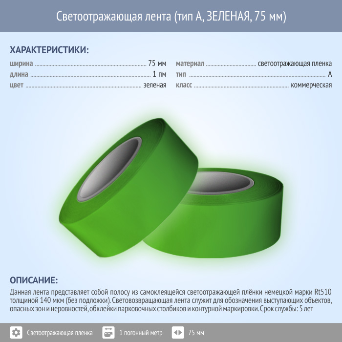 Светоотражающая однородная лента (тип А, ЗЕЛЕНАЯ, 75 мм х 1 п.м.) в Пушкино купить