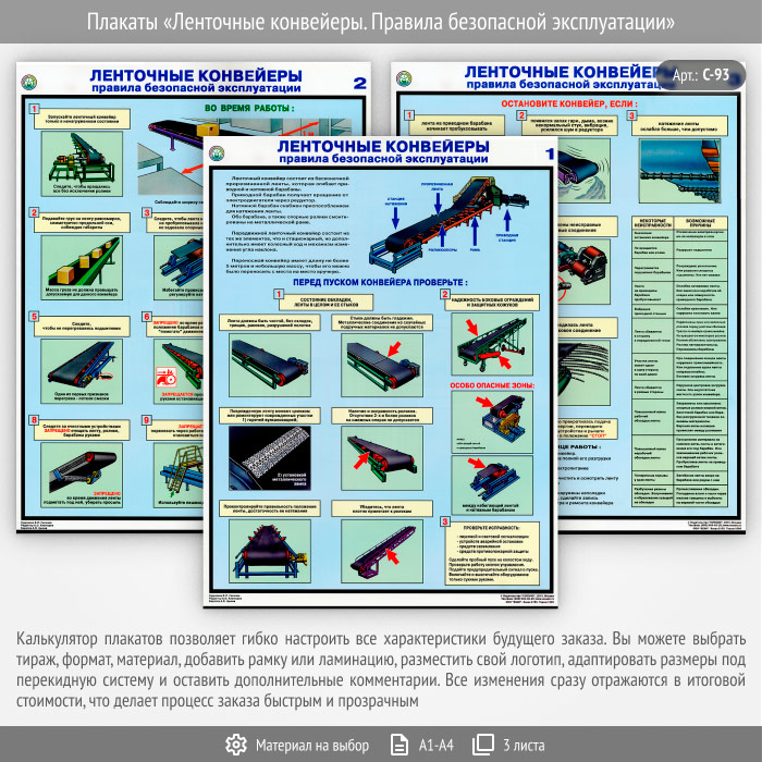 Плакаты «Ленточные конвейеры. Правила безопасной эксплуатации» (С-93, 3 листа) в Пушкино купить