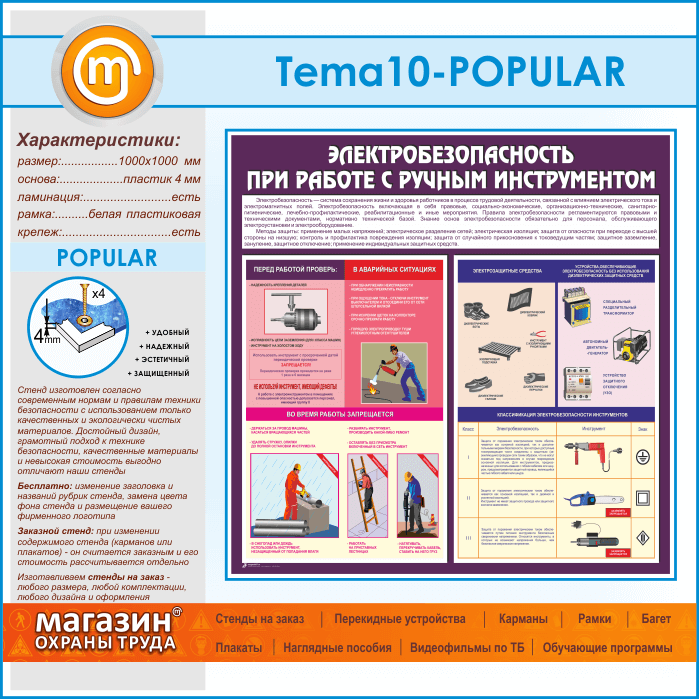 Стенд «Электробезопасность при работе с ручным инструментом» (TM-10-POPULAR) в Пушкино купить