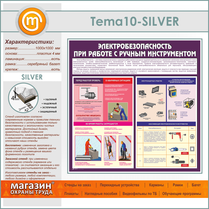 Стенд «Электробезопасность при работе с ручным инструментом» (TM-10-SILVER) в Пушкино купить