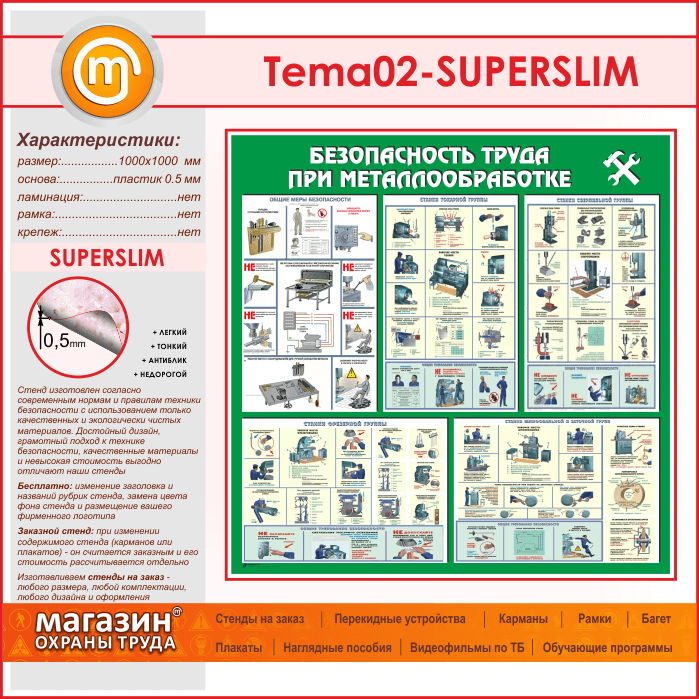 Стенд «Безопасность труда при металлообработке» (TM-02-SUPERSLIM) в Пушкино купить