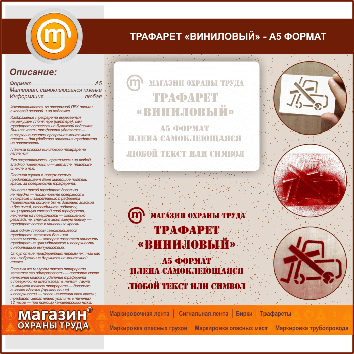 Трафарет «ВИНИЛОВЫЙ» (А5 формат, самоклеящаяся плёнка) в Пушкино купить