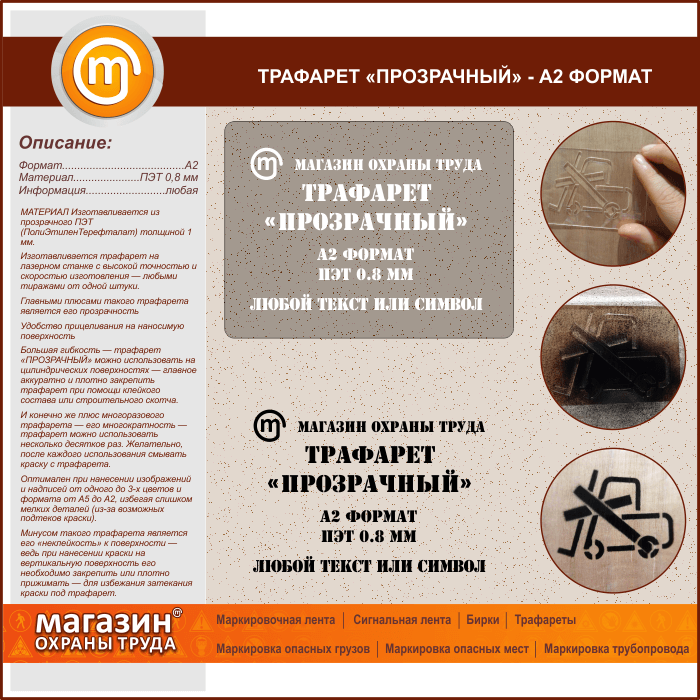 Трафарет «ПРОЗРАЧНЫЙ» (А2 формат, ПЭТ 0,8 мм) в Пушкино купить