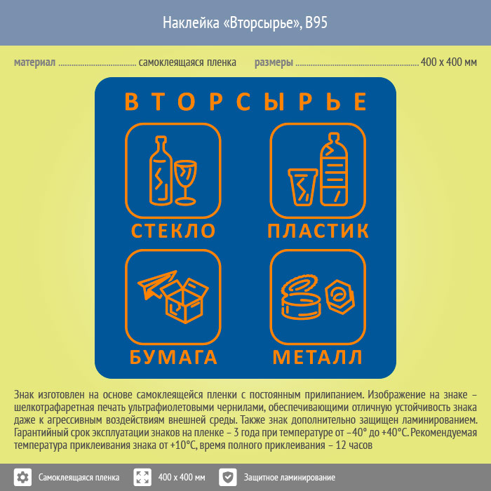 Наклейка на бак «Вторсырьё», B95 (пленка c ламинированием, 400х400 мм) в Пушкино купить