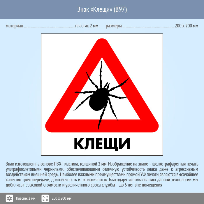 Знак «Клещи», B97 (пластик, 300х300 мм) в Пушкино купить
