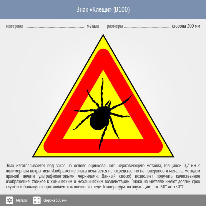 Знак «Опасно! Клещи», B100 (металл, сторона 200 мм) в Пушкино купить
