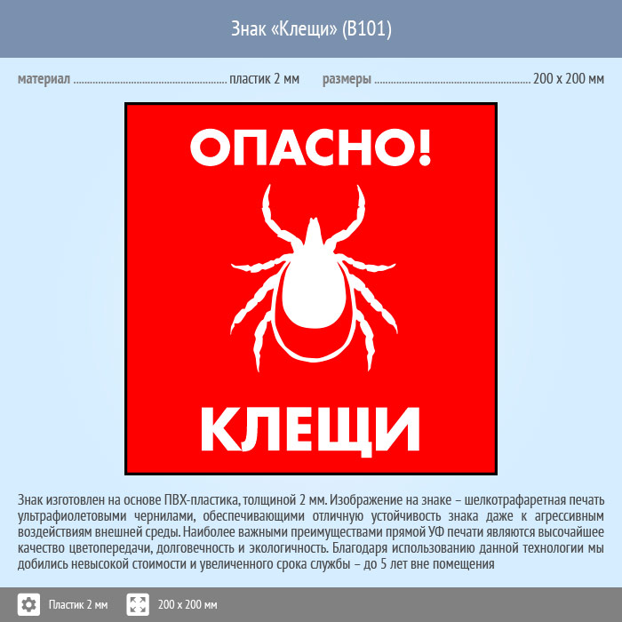 Знак «Опасно! Клещи», B101 (пластик, 200х200 мм) в Пушкино купить