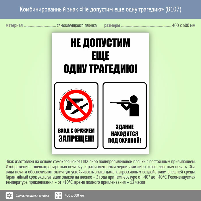 Комбинированный знак «Не допустим еще одну трагедию», B107 (пленка, 400х600 мм) в Пушкино купить