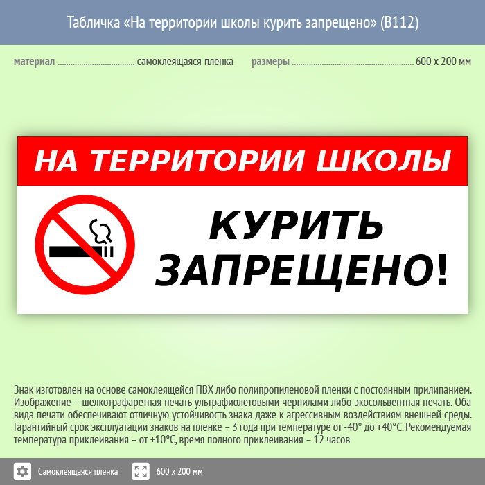 Табличка «На территории школы курить запрещено», B112 (пленка, 600х200 мм) в Пушкино купить