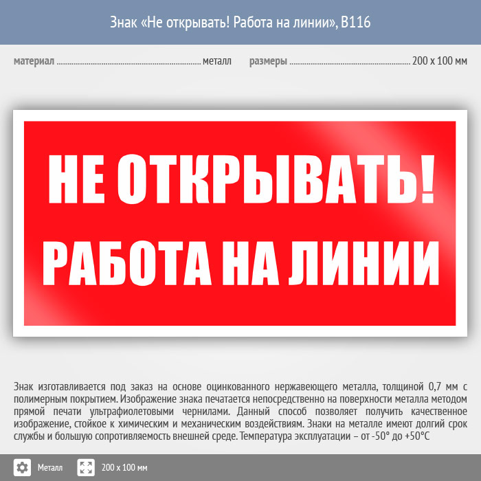 Знак «Не открывать! Работа на линии», B116 (металл, 200х100 мм) в Пушкино купить