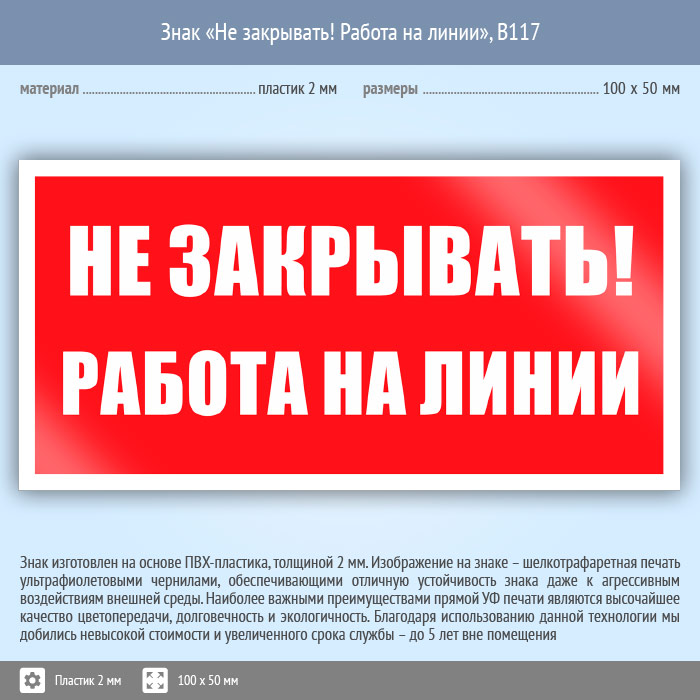 Знак «Не закрывать! Работа на линии», B117 (пластик, 100х50 мм) в Пушкино купить
