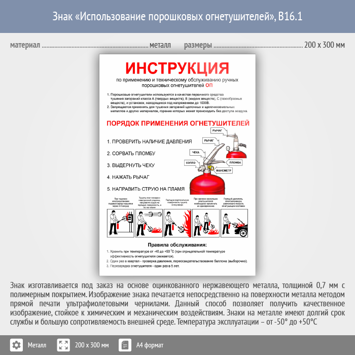 Знак «Использование порошковых огнетушителей», B16.1 (металл, 200х300 мм) в Пушкино купить