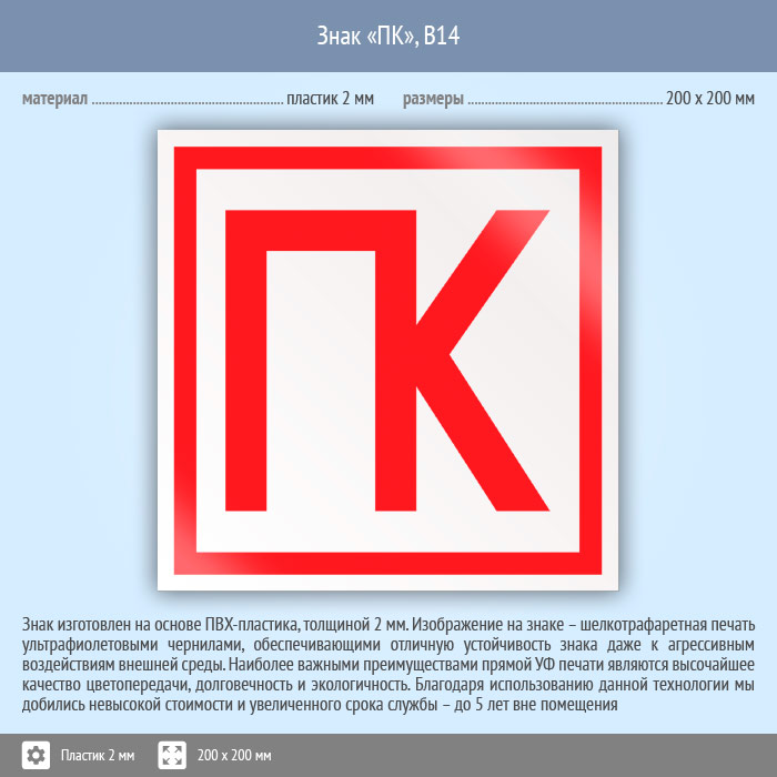 Знак «ПК», B14 (пластик, 200х200 мм) в Пушкино купить
