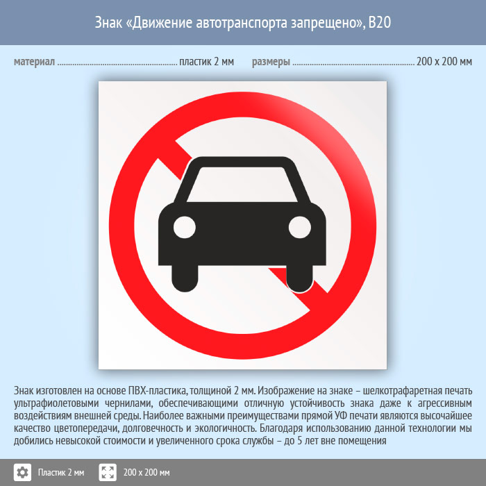 Знак «Движение автотранспорта запрещено», B20 (пластик, 200х200 мм) в Пушкино купить