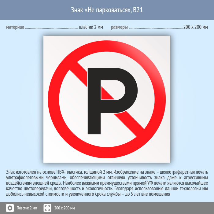 Знак «Не парковаться», B21 (пластик, 200х200 мм) в Пушкино купить