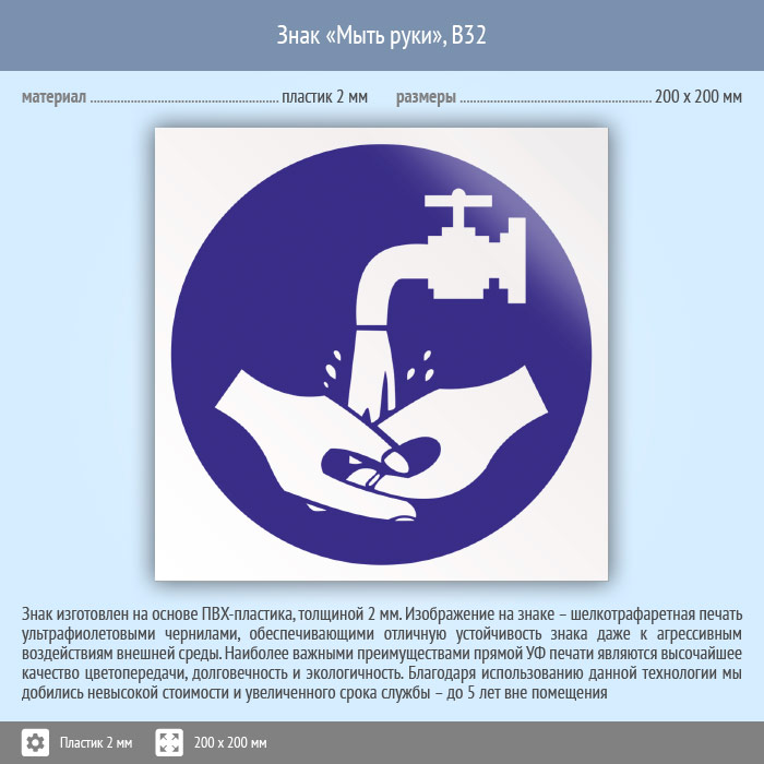 Знак «Мыть руки», B32 (пластик, 200х200 мм) в Пушкино купить