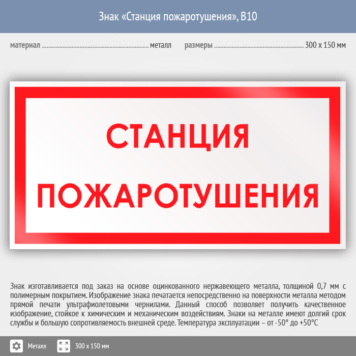 Знак «Станция пожаротушения», B10 (металл, 300х150 мм) в Пушкино купить