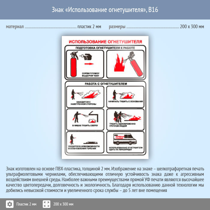 Знак «Использование огнетушителя», B16 (пластик, 200х300 мм) в Пушкино купить