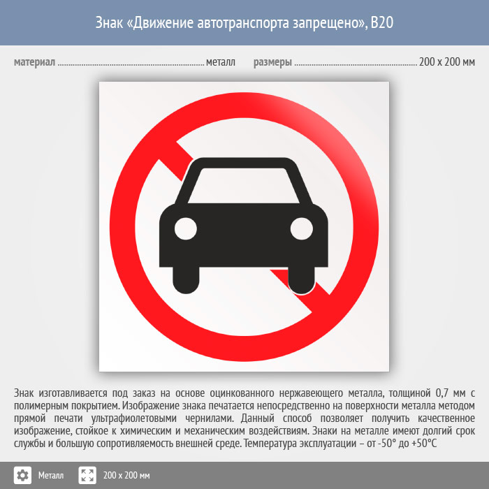 Знак «Движение автотранспорта запрещено», B20 (металл, 200х200 мм) в Пушкино купить