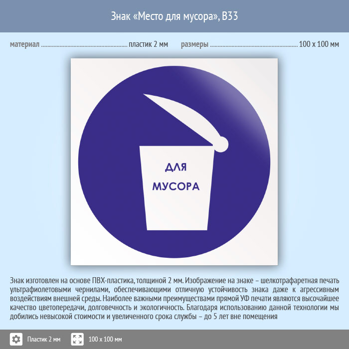 Знак «Место для мусора», B33 (пластик, 100х100 мм) в Пушкино купить