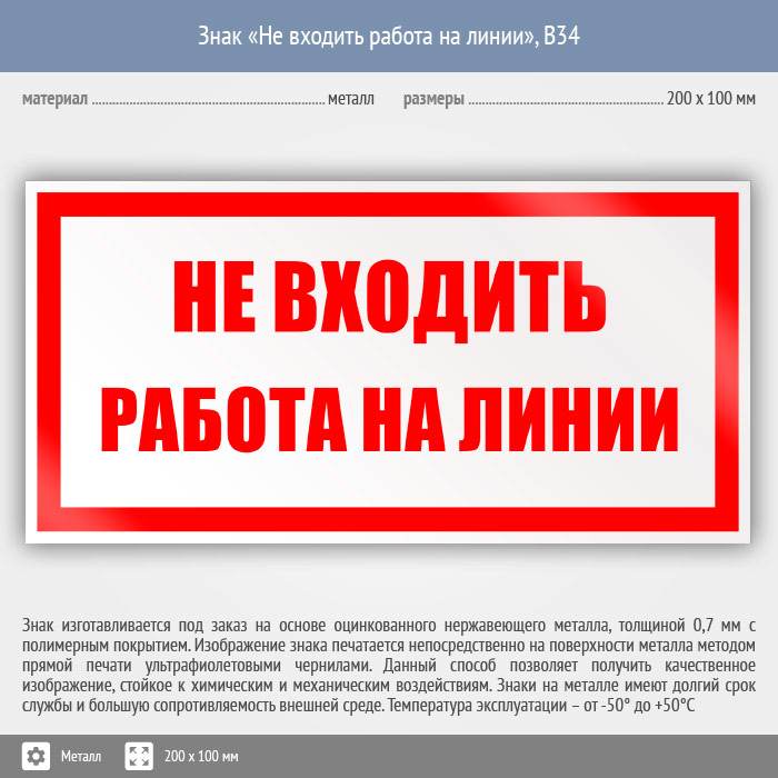 Знак «Не входить работа на линии», B34 (металл, 200х100 мм) в Пушкино купить