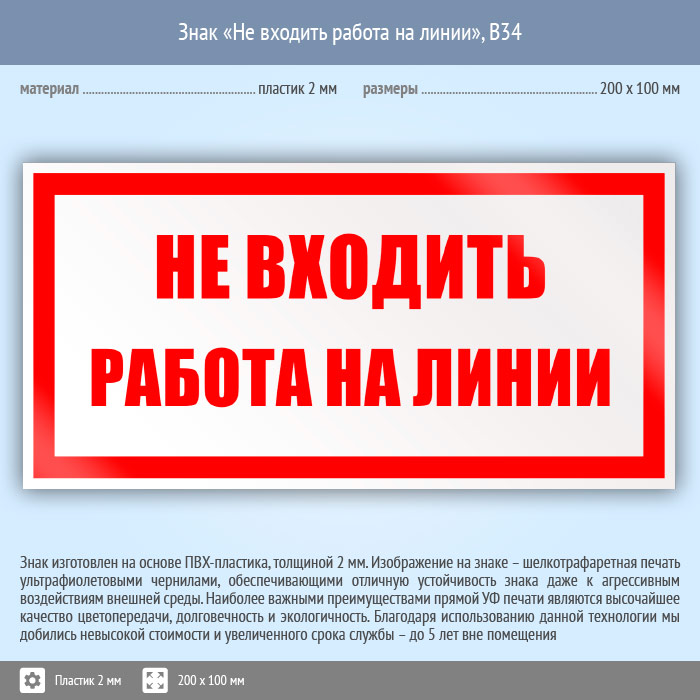 Знак «Не входить работа на линии», B34 (пластик, 200х100 мм) в Пушкино купить