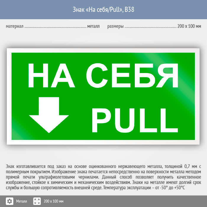 Знак «На себя/Pull», B38 (металл, 200х100 мм) в Пушкино купить