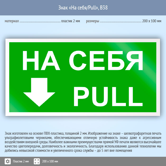 Знак «На себя/Pull», B38 (пластик, 200х100 мм) в Пушкино купить