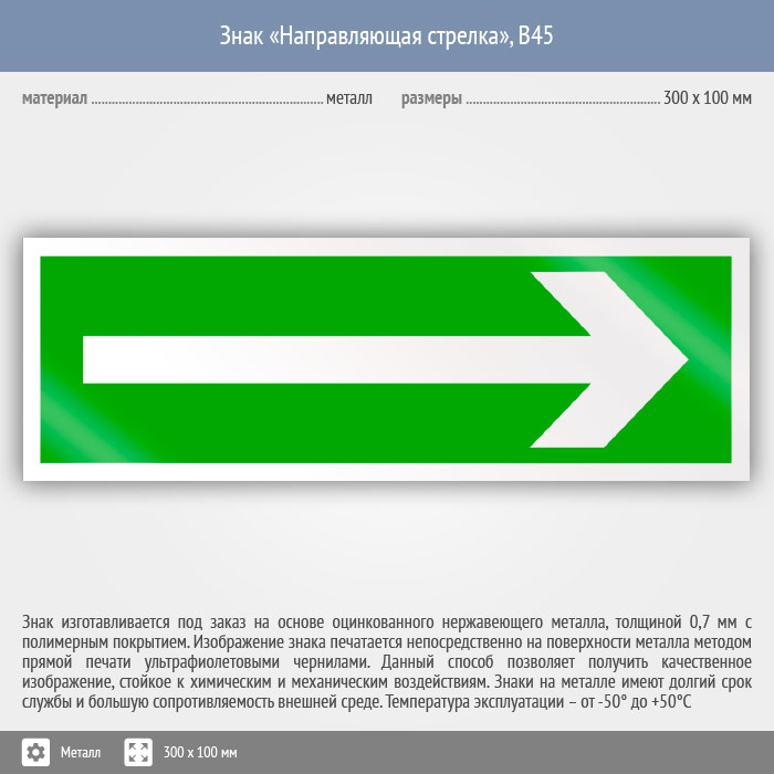 Знак «Направляющая стрелка», B45 (металл, 300х100 мм) в Пушкино купить