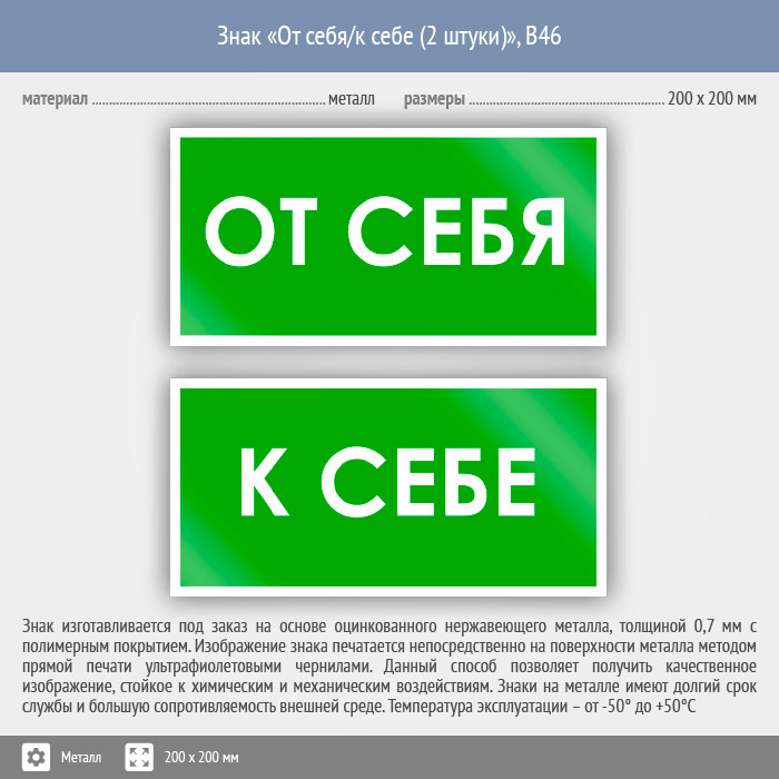 Знак «От себя/к себе», B46 (2 штуки, металл, 200х100 мм) в Пушкино купить